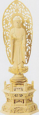 【仏像】 総白木 六角台座 舟立弥陀 【木地】 4.0寸