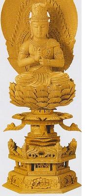 【仏像】 楠木地彫 八角台座 大日如来 金泥書 3.0寸