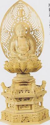 【仏像】柘植 八角台座 座弥陀 【唐草光背】 2.0寸