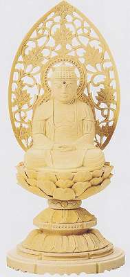 【仏像】 総白木 六角台座 座釈迦 【木地】 1.8寸