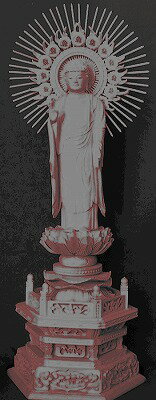 【仏像】 柘植 六角台座 高田派 立弥陀 4.0寸