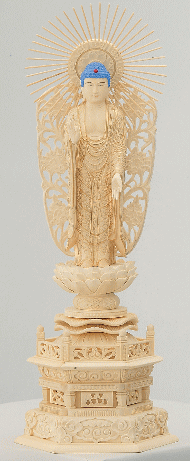 【送料無料】 小型仏壇用 檜のご本尊阿弥陀如来 (あみだにょらい)放射光背価格: 21,000円レビュー評価: 0.0 レビュー数:0 ●檜のご本尊は、家具調仏壇やミニ仏壇に安置しやすいサイズの仏像です。阿弥陀如来 放射光背は、西方浄土に導く限りない慈悲にあふれた仏様です。光背が放射状であるのが浄土真宗(大谷派)の宗派の特徴です。 ◆宗派浄土真宗(大谷派) ■詳細材質:檜材サイズ:高さ19×幅7.7×奥行7cm重量:約60g生産国:中国※ご本尊は、お客様の宗派でお選び下さい※小型仏壇サイズとなっておりますが、仏壇の高さ等を ご確認の上お求め下さい 小型の仏壇にお祀りするのに ちょうど良いサイズのご本尊 総檜材に緻密な彫刻を施した格式高い仏像です お仏壇には仏教の各宗派で定められた仏像(如来)を安置してお祀りします ご本尊を安 |